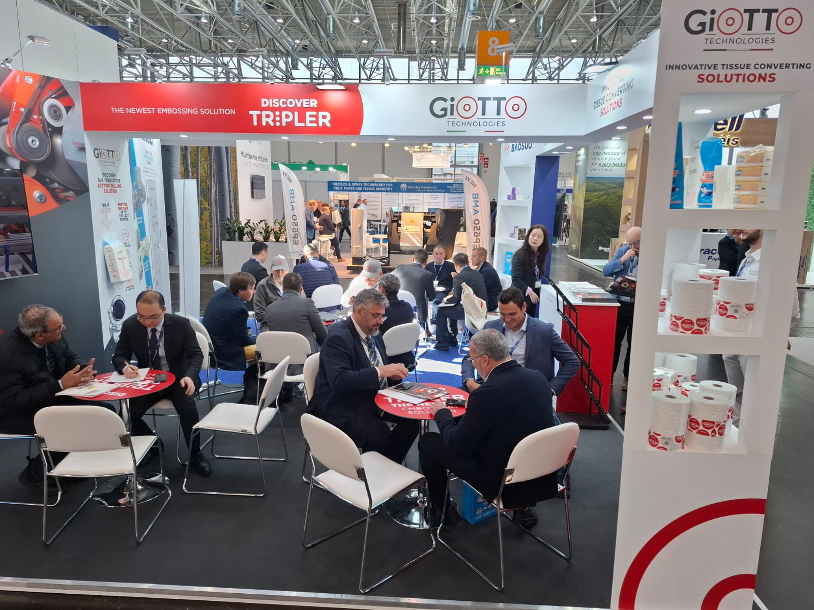 Durante la fiera, molti visitatori hanno espresso un forte interesse per le soluzioni innovative di Giotto Technologies, in particolare per i suoi sistemi di automazione avanzati e le interfacce macchina di facile utilizzo, progettati per migliorare la qualità del prodotto e la sostenibilità delle operazioni di trasformazione del tissue.